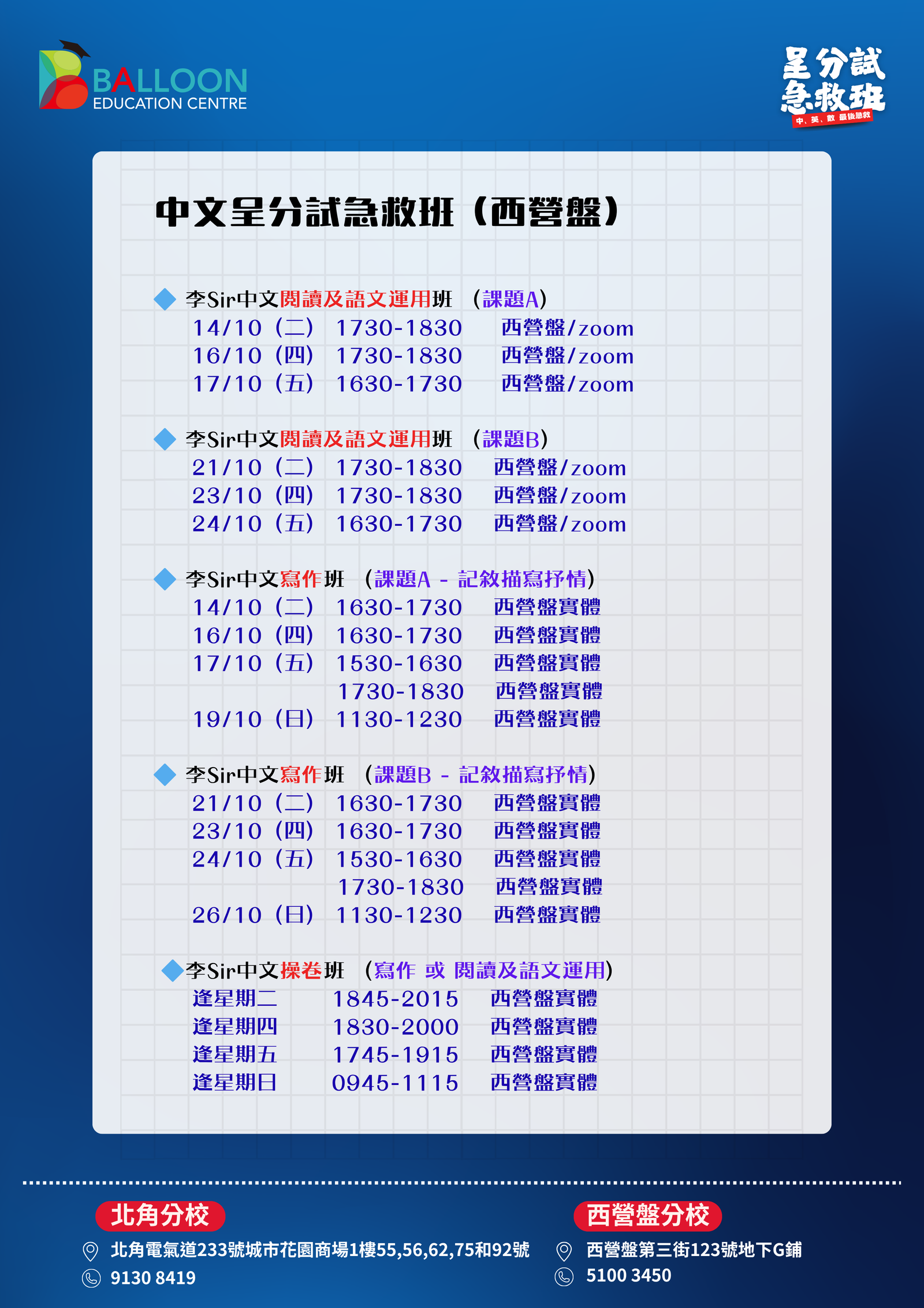 上課地點:北角分校/西營盤分校/Zoom