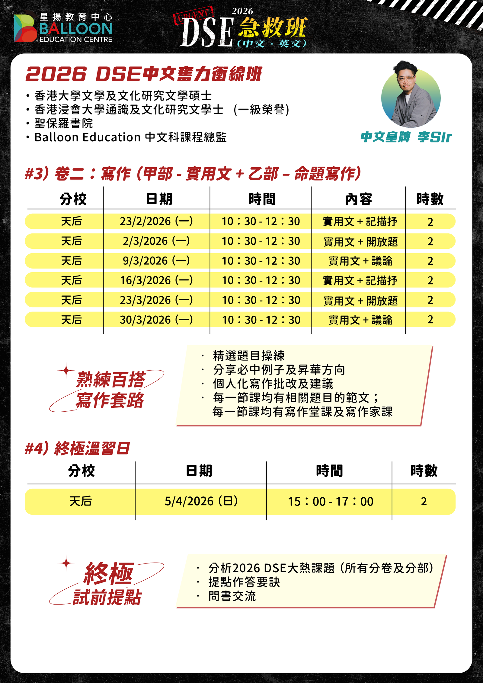 2026 DSE中文奮力衝線班】(天后分校/Zoom)