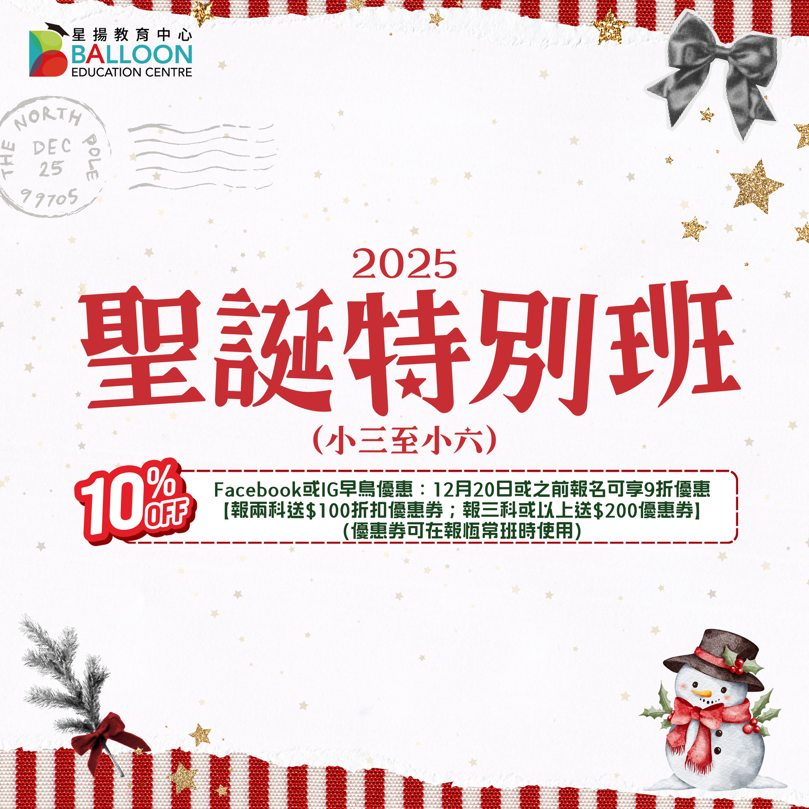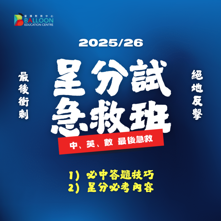 Balloon Education Centre於2017年創立,是港島區中小學生補習社首選,專注於幫助學生提升成績、強化考試技巧,並針對校內考試模式設計教學內容。Balloon老師的專業背景自香港及海外頂尖學府,補習經驗極為豐富,課堂結合個人化指導、深入分析考試題型,幫助學生掌握關鍵考點。因材施教,補底拔尖,讓學生顯著進步。Balloon設有北角、天后及西營盤三間分校,提供各科常規課程、1對1課程、考前急救班、暑期課程及節日特設課程等。