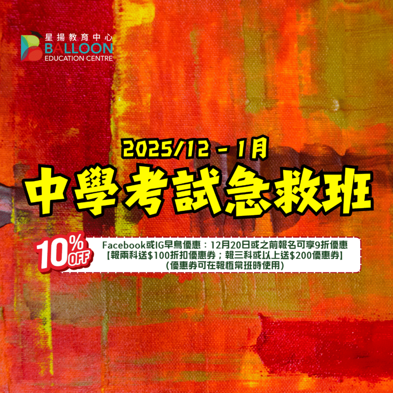 Balloon Education Centre於2017年創立,是港島區中小學生補習社首選,專注於幫助學生提升成績、強化考試技巧,並針對校內考試模式設計教學內容。Balloon老師的專業背景自香港及海外頂尖學府,補習經驗極為豐富,課堂結合個人化指導、深入分析考試題型,幫助學生掌握關鍵考點。因材施教,補底拔尖,讓學生顯著進步。Balloon設有北角、天后及西營盤三間分校,提供各科常規課程、1對1課程、考前急救班、暑期課程及節日特設課程等。